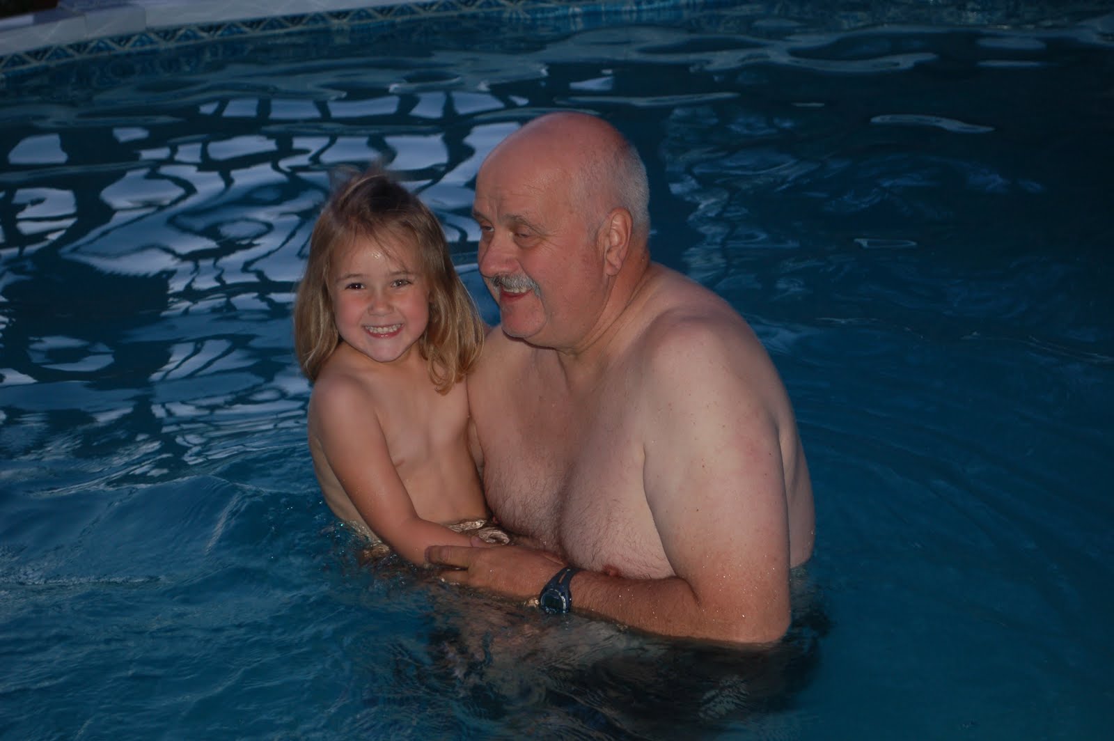 The girls have been dying to get into the pool. They put their feet in every day. Today, PopPop finally got it ready for swimming. Chloe didn't have her bathing suit here, so she went in the water in her "birthday" suit. She said it was a little cold, but will be ready to go back in tomorrow.